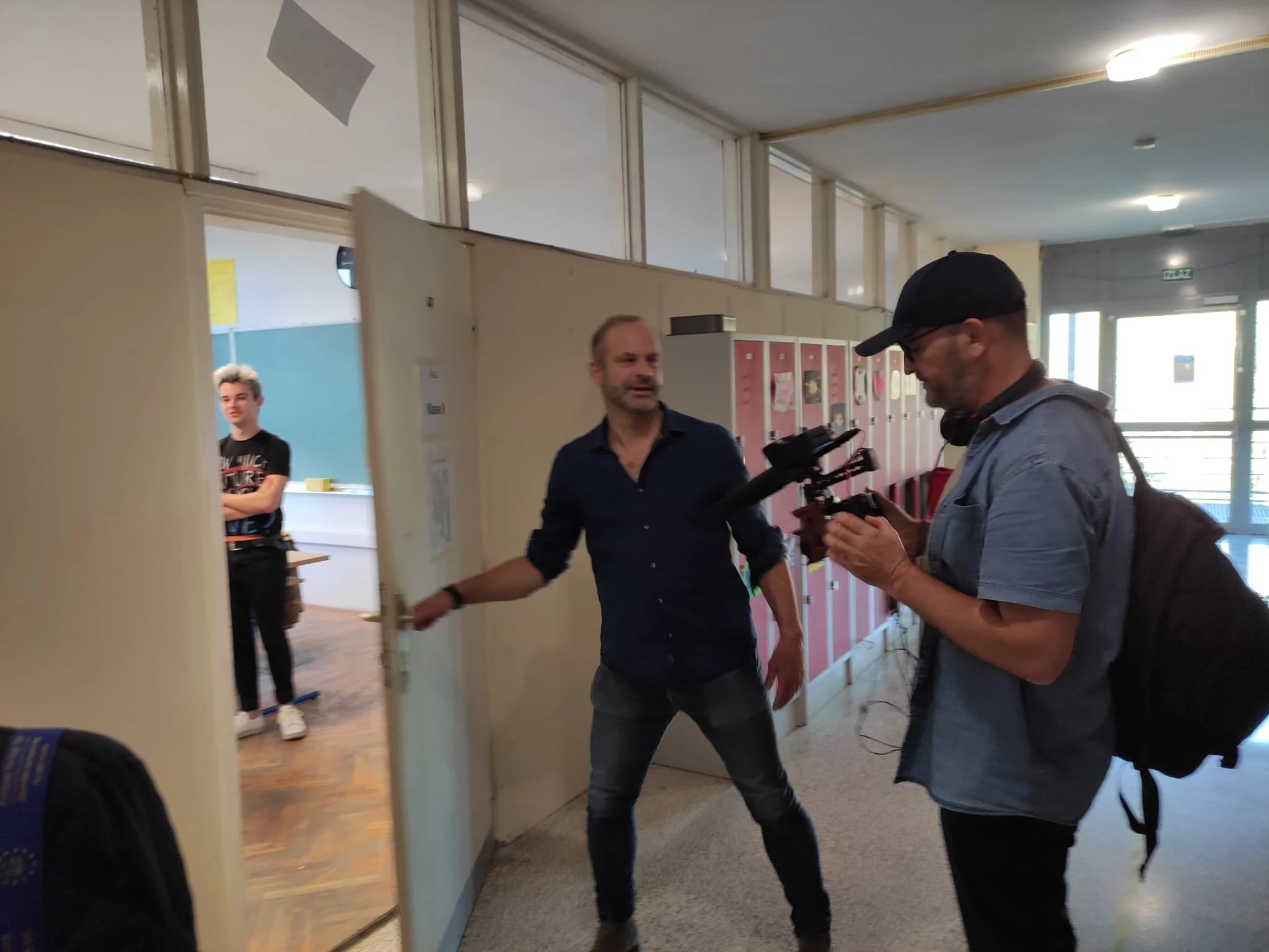 Le célèbre reporter Ivan Kabacoff et son acolyte caméraman Fabrice ont fait une halte en classe de 6e afin de participer à un cours de géographie : un moment très sympathique, quoiqu’un peu désarçonnant pour les élèves !